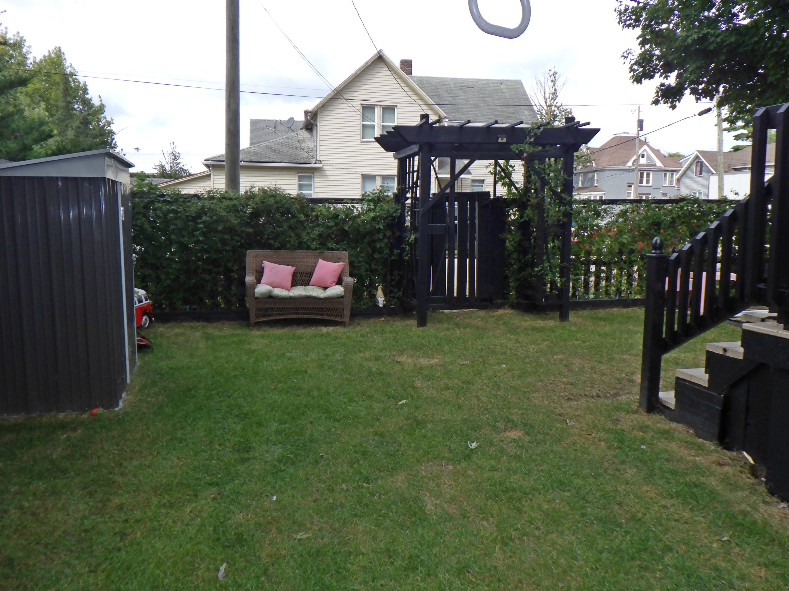 Super cozy 1 bedroom, 1 full bath home on a corner lot. Newer updates within the last 8 years include: windows, vinyl siding, roof, furnace, wiring, hot water heater and upstairs floors. Downstairs flooring has been replaced in the last year. Relax in the 4 Season Room at the front of the house or on the 9×11 back porch overlooking the cute backyard. Seller is currently using the upper loft/landing as a bedroom area. Full basement. No garage, 1 spot for parking east of home.